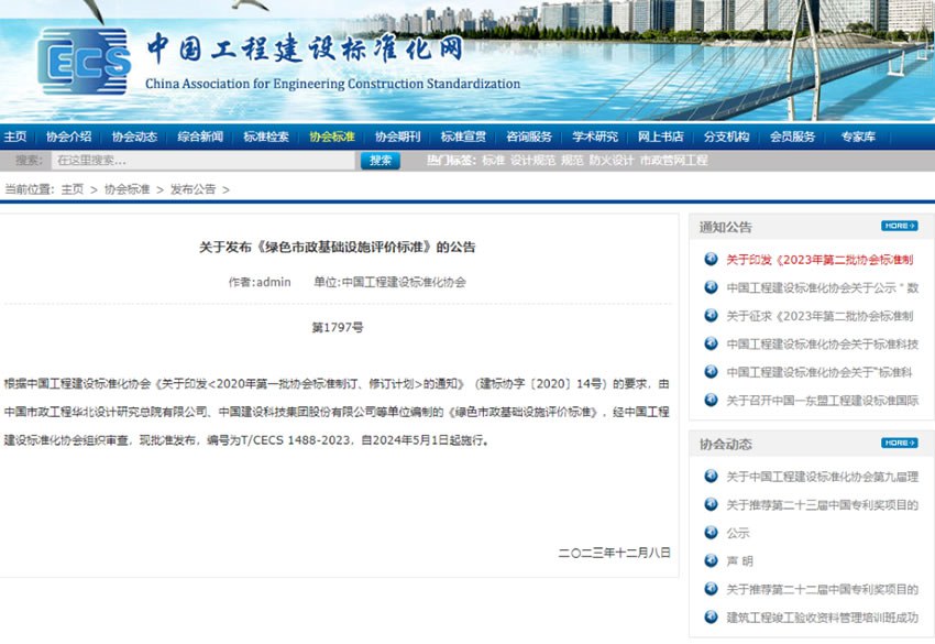 根據(jù)中國工程建設(shè)標(biāo)準(zhǔn)化協(xié)會(huì)《關(guān)于印發(fā)<2020年第一批協(xié)會(huì)標(biāo)準(zhǔn)制訂、修訂計(jì)劃的通知》(建標(biāo)協(xié)字(2020) 14號(hào))的要求,由中國市政工程華北設(shè)計(jì)研究總院有限公司、中國建設(shè)科技集團(tuán)股份有限公司牽頭,重慶閣林環(huán)??萍加邢薰镜葐挝粎⑴c編制的《綠色市政基礎(chǔ)設(shè)施評(píng)價(jià)標(biāo)準(zhǔn)》,經(jīng)中國工程建設(shè)標(biāo)準(zhǔn)化協(xié)會(huì)組織審查,現(xiàn)批準(zhǔn)發(fā)布,編號(hào)為T/CECS 1488-2023,自2024年5月1日起施行。