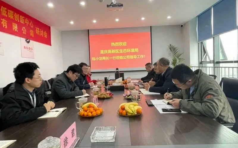 2023年2月23日,重慶高新區(qū)生態(tài)環(huán)境局局長陳小龍、副局長王以堯、科長張凱和李燦一行到訪公司指導(dǎo)工作。公司總經(jīng)理李果博士、常務(wù)副總經(jīng)理孫通博士、副總經(jīng)理董榮等出席會議。