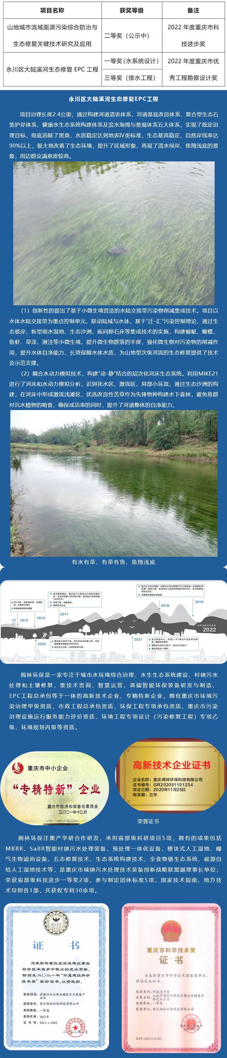 這是我司繼獲得2020年度重慶市科技進步一等獎、2021年度住建部華夏進步一等獎、專精特新、新型研發機構、瞪羚企業等榮譽后,社會各界對我司的再次認可,是對我司堅定走“專、精、特、新、鏈、產”環保產業創新之路的嘉獎與鼓勵,我司將不忘初心、砥礪前行,創新并踐行“政產學研用”之路,加大科技研發投入及產品轉化,帶動環重慶大學環保創業高潮,助力國家生態環境保護!